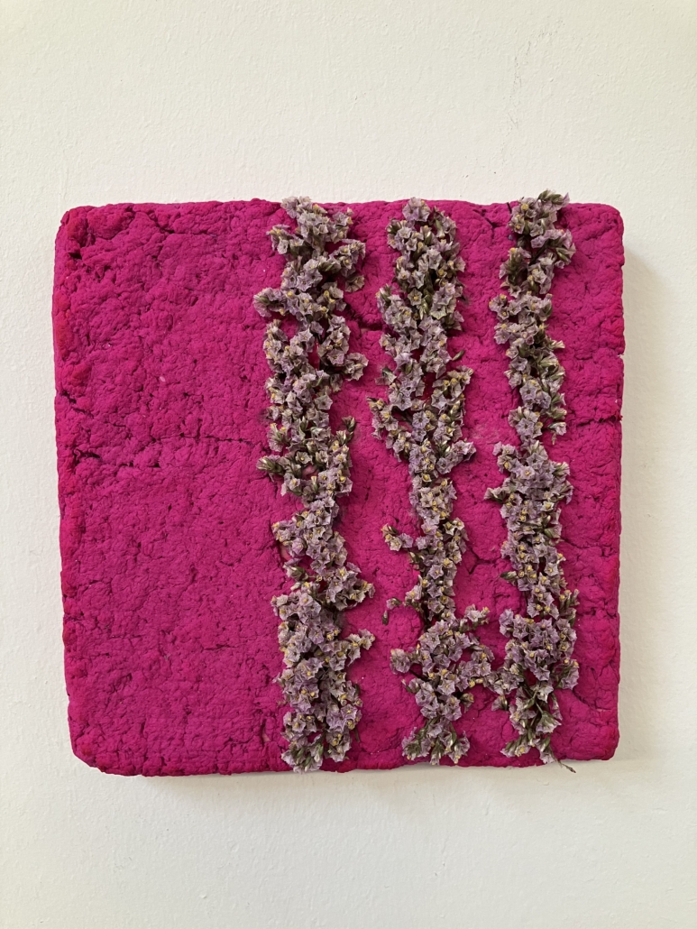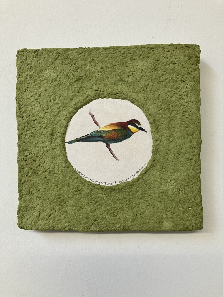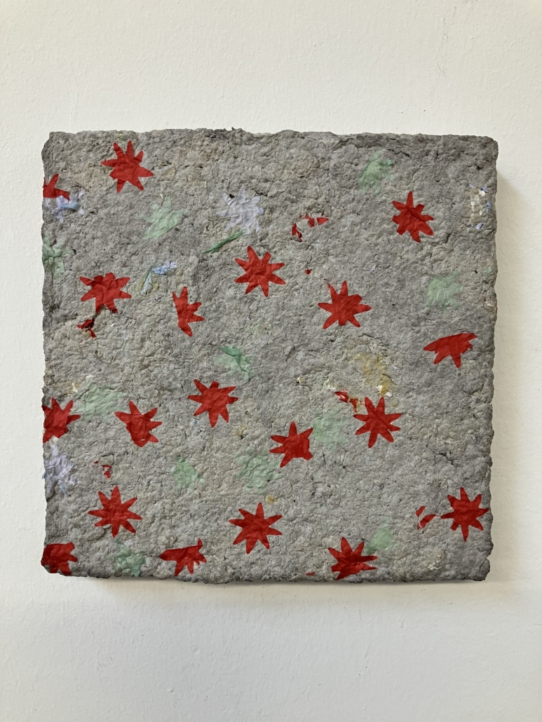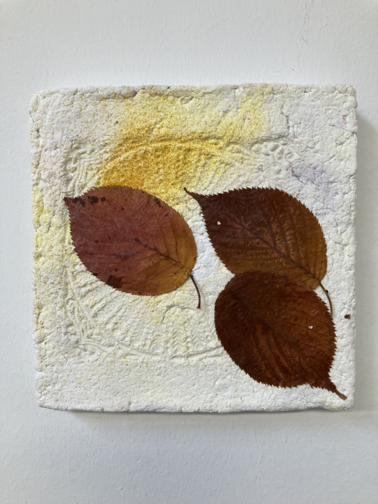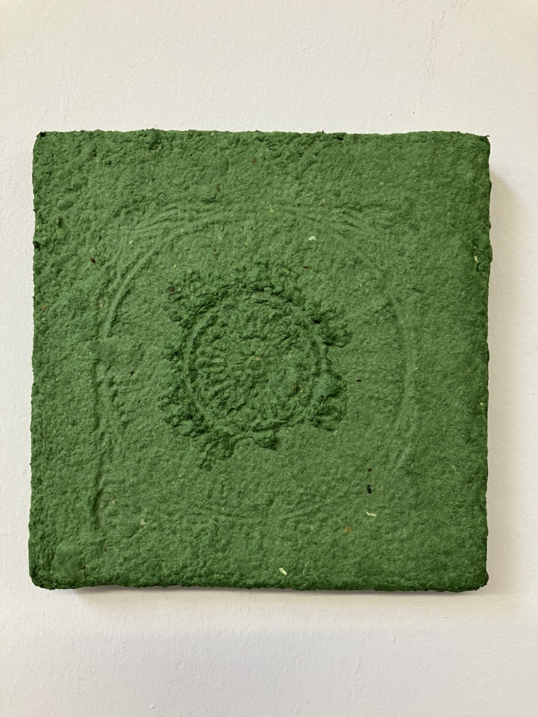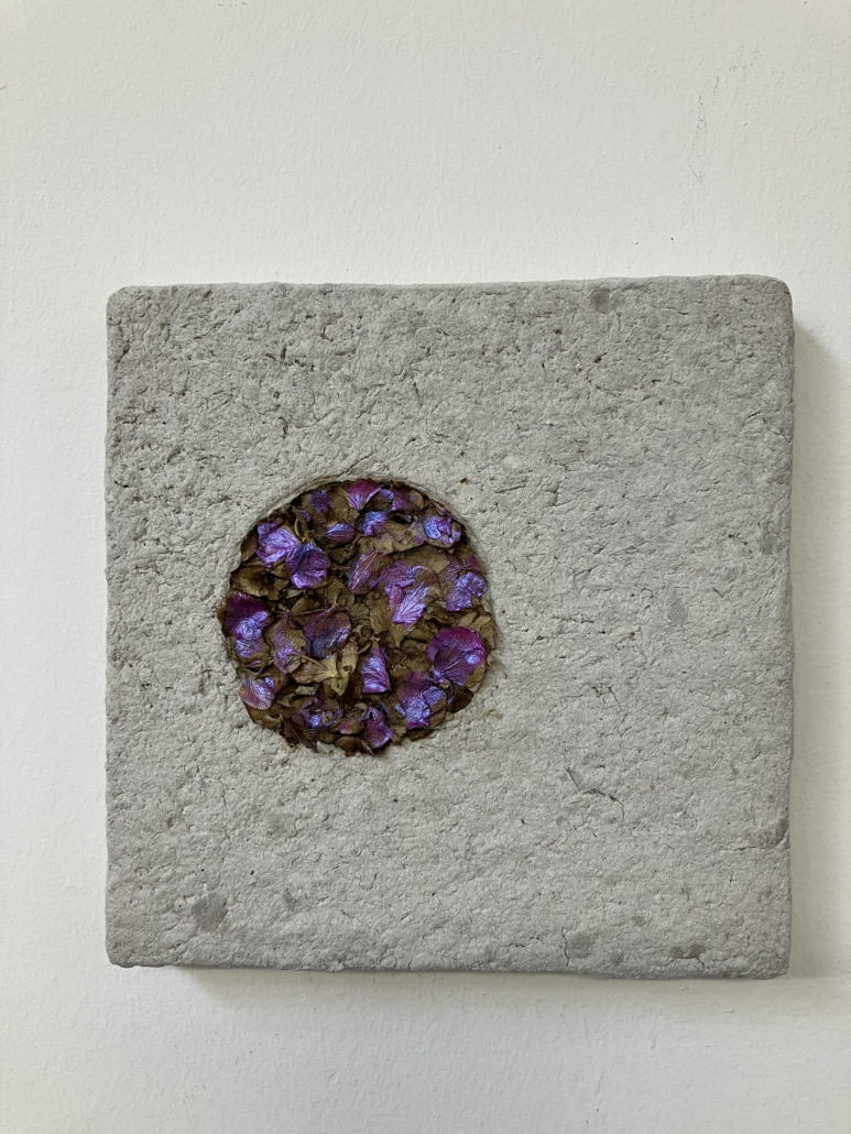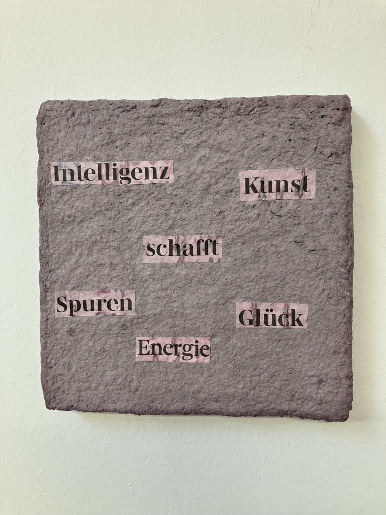 Für meine Kunstwerke setze ich eigenhändig geschöpfte Pulpe/Maché und Papiere ein, die ich in meinem Atelier herstelle und in meinem Werkbuch dokumentiert ist.